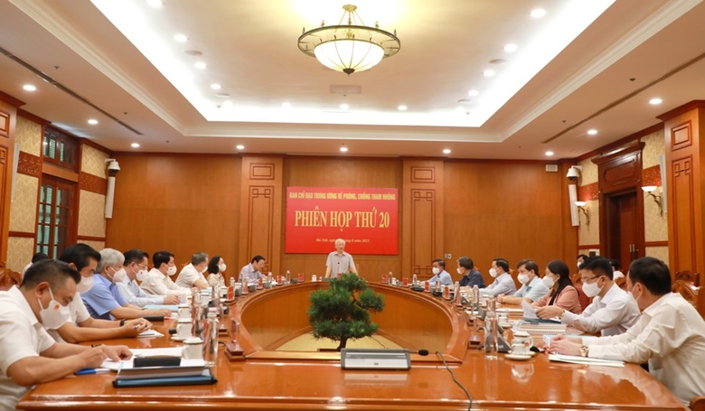 Đồng chí Tổng Bí thư Nguyễn Phú Trọng, Trưởng Ban Chỉ đạo Trung ương về phòng, chống tham nhũng phát biểu chỉ đạo tại Phiên họp thứ 20.