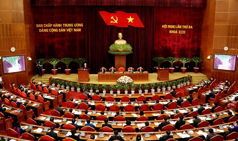Quang cảnh Hội nghị lần thứ ba, Ban Chấp hành Trung ương khóa XIII diễn ra ngày 5/7/2021. (Ảnh: PC)