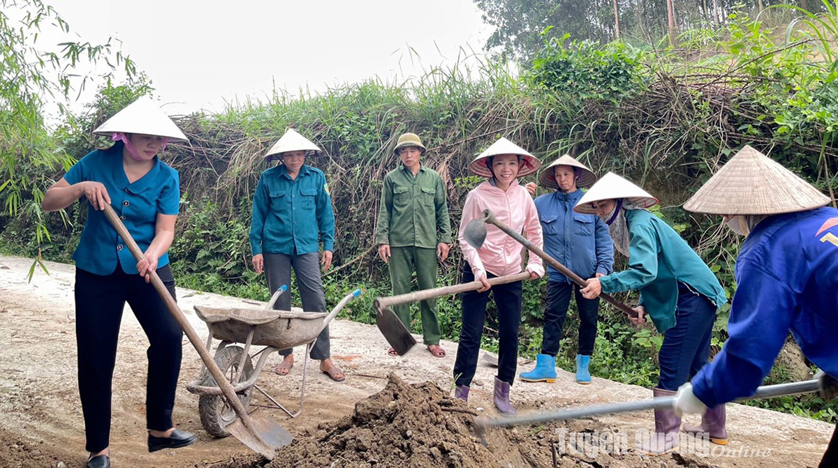 Đồng chí Dương Thị Phương Nhung (ngoài cùng bên trái), Bí thư Đảng ủy xã Tam Đa (Sơn Dương)