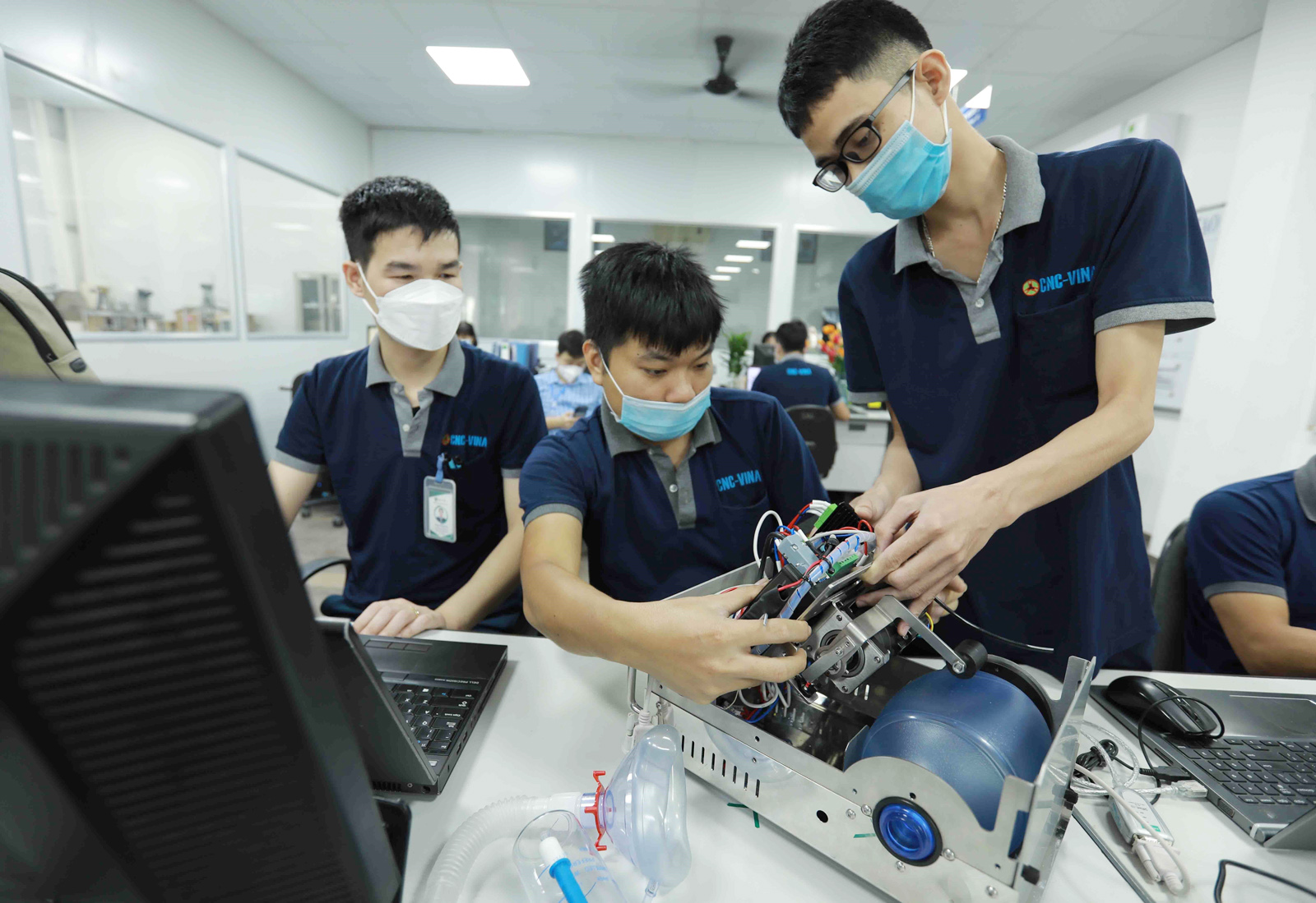 Trong bối cảnh đại dịch COVID-19 vô cùng phức tạp và có nhiều tác động khó lường, việc Việt Nam vẫn duy trì được vị trí trong nhóm 50 quốc gia dẫn đầu về chỉ số đổi mới sáng tạo toàn cầu là một nỗ lực rất lớn (Trong ảnh: Công ty cổ phần Ứng dụng công nghệ & CNC-Vina (Hà Nội) nghiên cứu, chế tạo thành công máy trợ thở trong ngành y tế để xin sớm cấp phép lưu hành phục vụ điều trị bệnh nhân COVID-19) _Ảnh: TTXVN