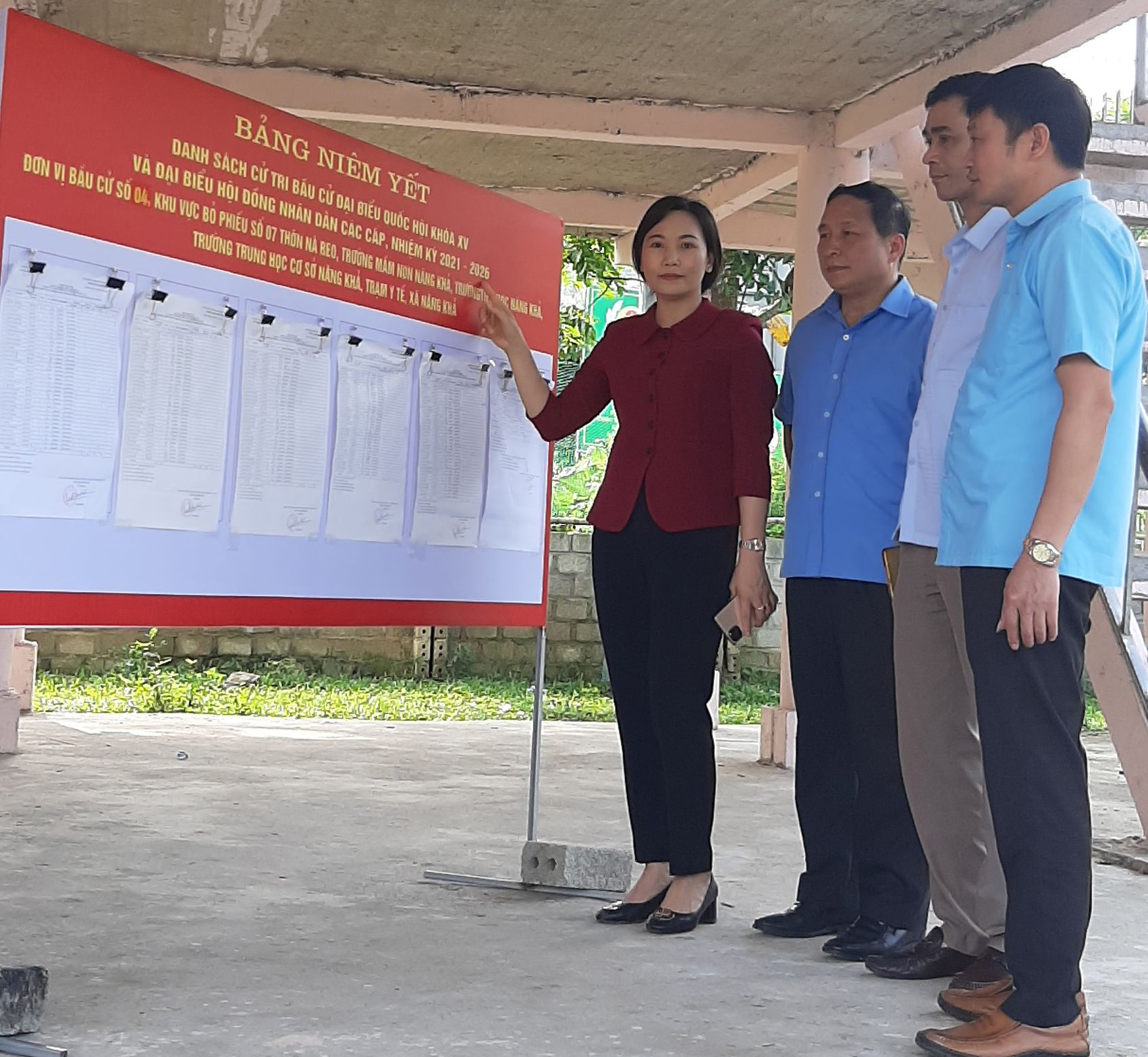 Sau khi kiểm tra trực tiếp một số khu vực bỏ phiếu tại xã Năng Khả, xã Thanh Tương của huyện Na Hang; xã Lăng Can, xã Bình An, xã Thổ Bình của huyện Lâm Bình, đồng chí Nông Thị Bích Huệ, Trưởng Ban Tuyên giáo Tỉnh ủy, Trưởng ban bầu cử đại biểu Quốc hội khóa XV, nhiệm kỳ 2021-2026 đơn vị bầu cử số 1, Trưởng ban bầu cử đại biểu Hội đồng nhân dân tỉnh Tuyên Quang khóa XIX, nhiệm kỳ 2021-2026 đơn vị bầu cử số 2 đề nghị: