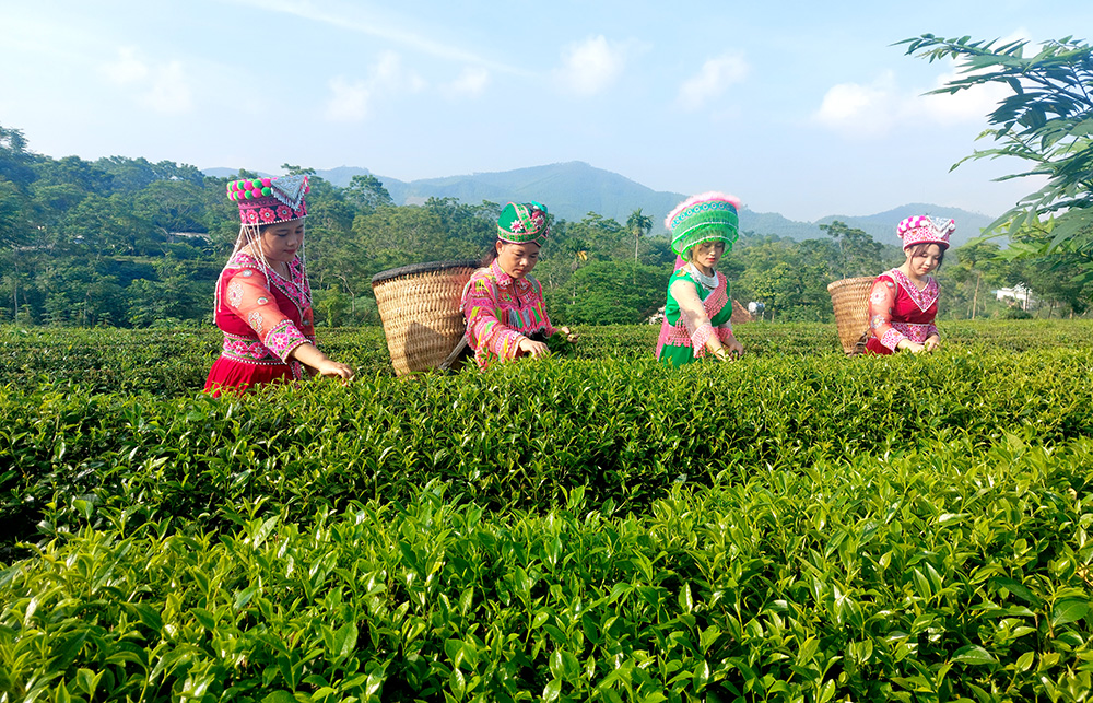 Đồng bào dân tộc Mông thôn Mỹ Hoa, xã Mỹ Bằng (Yên Sơn) thu hái chè.
