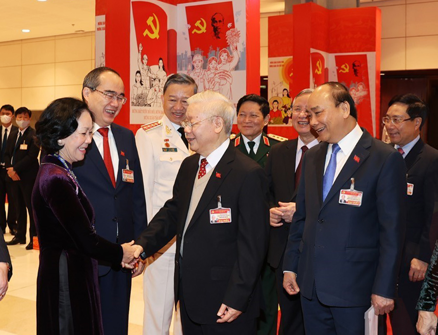 Tổng Bí thư, Chủ tịch nước Nguyễn Phú Trọng cùng các đồng chí lãnh đạo Đảng, Nhà nước và các đại biểu tại phiên thảo luận các văn kiện trình Đại hội đại biểu toàn quốc lần thứ XIII của Đảng (tháng 1-2021) _Ảnh: TTXVN