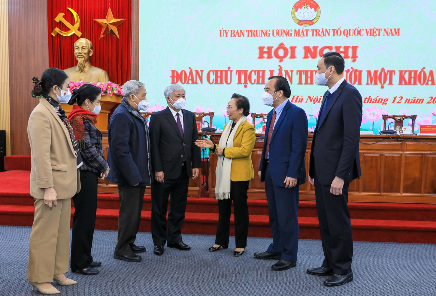 Đồng chí Đỗ Văn Chiến, Bí thư Trung ương Đảng, Chủ tịch Ủy ban Trung ương Mặt trận Tổ quốc Việt Nam trao đổi với các đại biểu tại Hội nghị Đoàn Chủ tịch lần thứ 11 (khóa IX)_Nguồn: mattran.org.vn