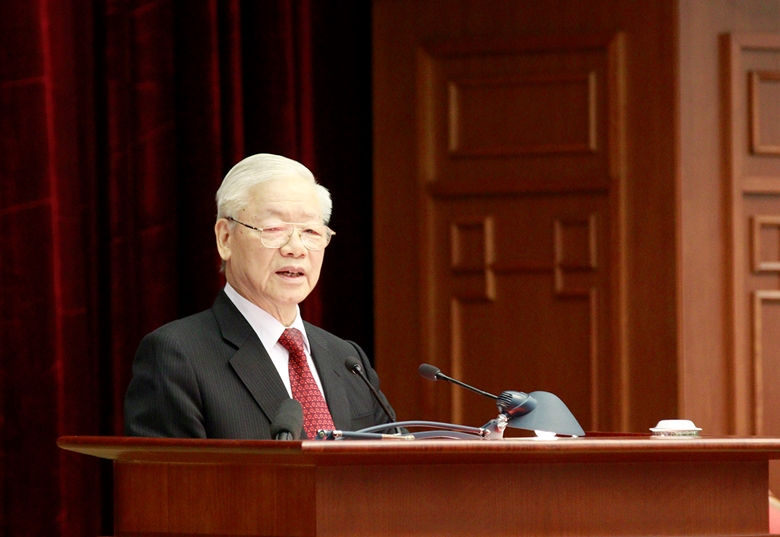 Tổng Bí thư Nguyễn Phú Trọng phát biểu khai mạc Hội nghị. (Ảnh: Phạm Cường)