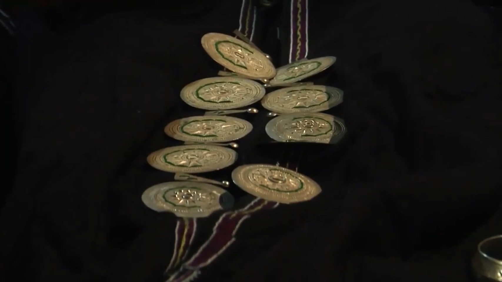 Đi kèm với trang phục là khăn đội đầu và dây xà tích bằng bạc, trên dây xà tích có treo nhiều vật dụng được làm bằng bạc rất tinh xảo như; hộp đựng vôi để ăn trầu, hình con cá lớn, cá nhỏ (tượng trưng cho cuộc sống sung túc), những quả chuông bằng bạc…gia đình giàu có thì dây xà tích lớn hơn và nhiều vật dụng hơn.