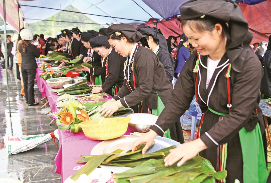 Phụ nữ Sán Dìu thể hiện sự tinh tế, khéo trong việc chế biến các món ăn.