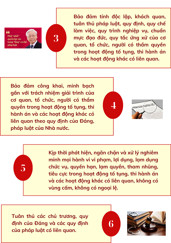 Ngày 27/10/2023 Ban Chấp hành Trung ương ban hành Quy định số 132-QĐ/TW về kiểm soát quyền lực, phòng, chống tham nhũng, tiêu cực trong hoạt động điều tra, truy tố, xét xử, thi hành án với 06 nguyên tắc như sau: