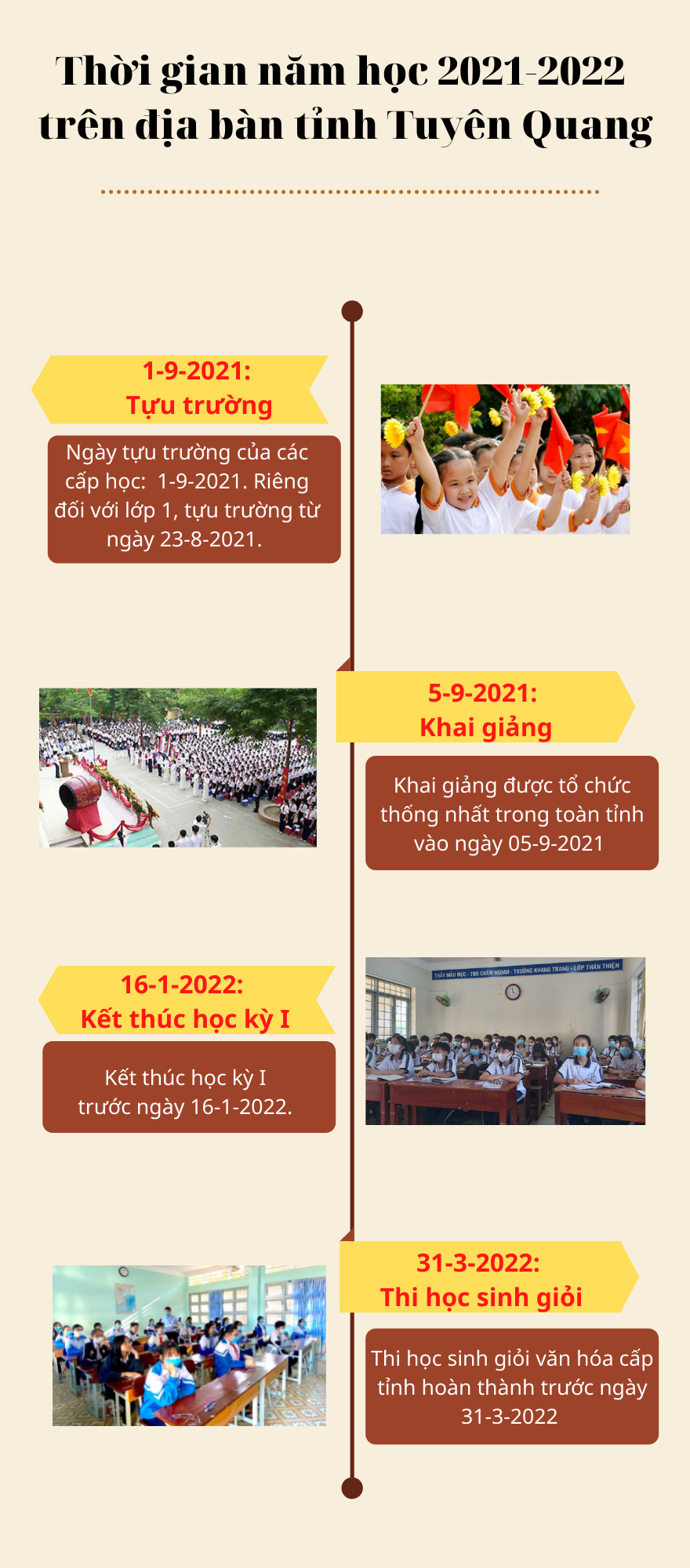 Các mốc thời gian năm học 2021 - 2022 trên địa bàn tỉnh Tuyên Quang
