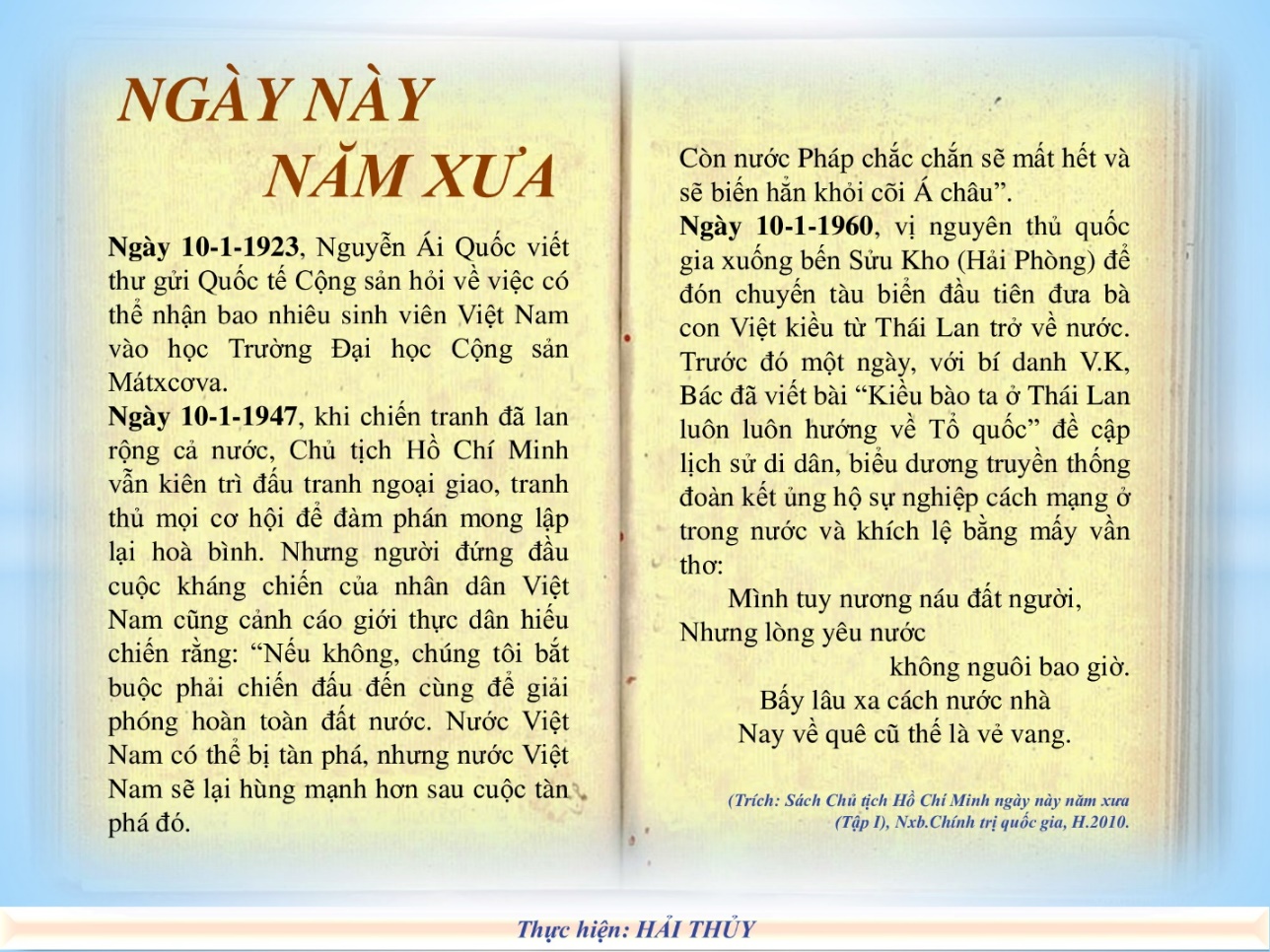 Ngày 10/1/1946, tại cuộc họp đầu tiên của Ủy ban nghiên cứu kế hoạch kiến quốc, Chủ tịch Hồ Chí Minh phát biểu “Dân chỉ biết rõ giá trị của tự do, của độc lập khi mà dân được ăn no, mặc đủ”. Bài phát biểu được đăng trên Báo Cứu quốc, số 139, ngày 11/1/1946.