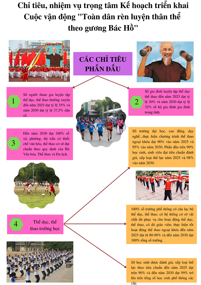 Chỉ tiêu, nhiệm vụ trọng tâm Kế hoạch triển khai Cuộc vận động "Toàn dân rèn luyện thân thể theo gương Bác Hồ"