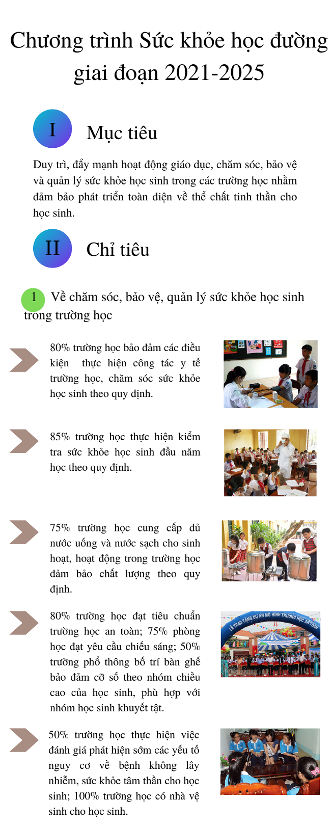 Ngày 02/10/2021, Phó Thủ tướng Chính phủ Vũ Đức Đam đã ký Quyết định số 1660/QĐ-TTg phê duyệt Chương trình Sức khỏe học đường giai đoạn 2021-2025 với mục tiêu và các chỉ tiêu, nhiệm vụ và giải pháp cụ thể như sau: