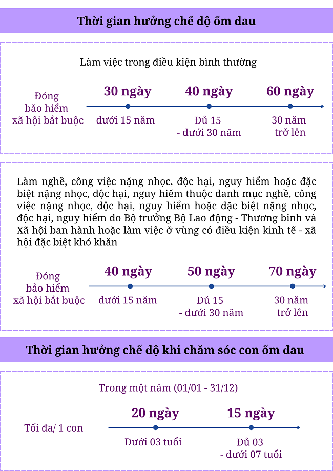 Điều kiện, thời gian hưởng chế độ ốm đau và khi chăm sóc con ốm đau đối với bảo hiểm xã hội bắt buộc