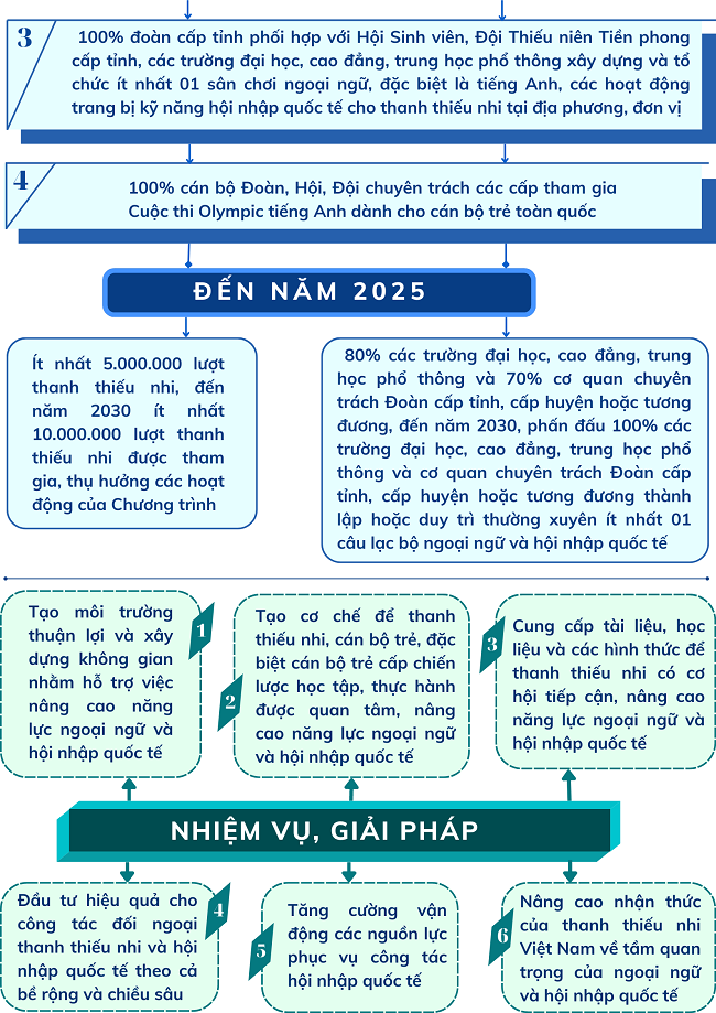 Đối tượng, mục tiêu, nhiệm vụ, giải pháp hỗ trợ nâng cao năng lực ngoại ngữ và hội nhập quốc tế cho thanh thiếu nhi Việt Nam giai đoạn 2022 - 2030