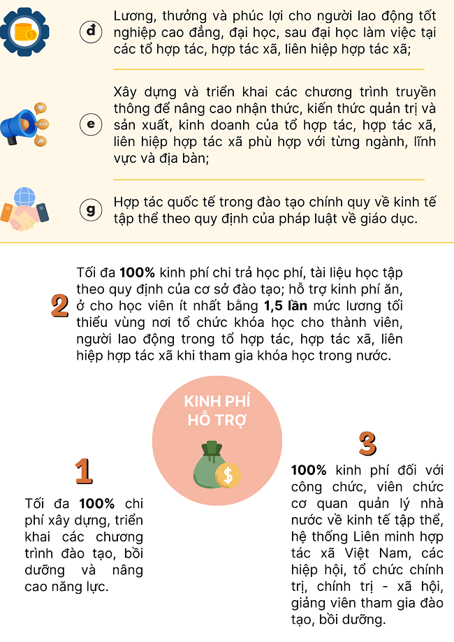 Ngày 12/9/2024 Chính phủ ban hành Nghị định số 113/2024/NĐ-CP quy định chi tiết một số điều của luật hợp tác xã với một số chính sách của nhà nước về hỗ trợ phát triển tổ hợp tác, hợp tác xã, liên hiệp hợp tác xã quy định tại điều 7, điều 10, điều 11 như sau: