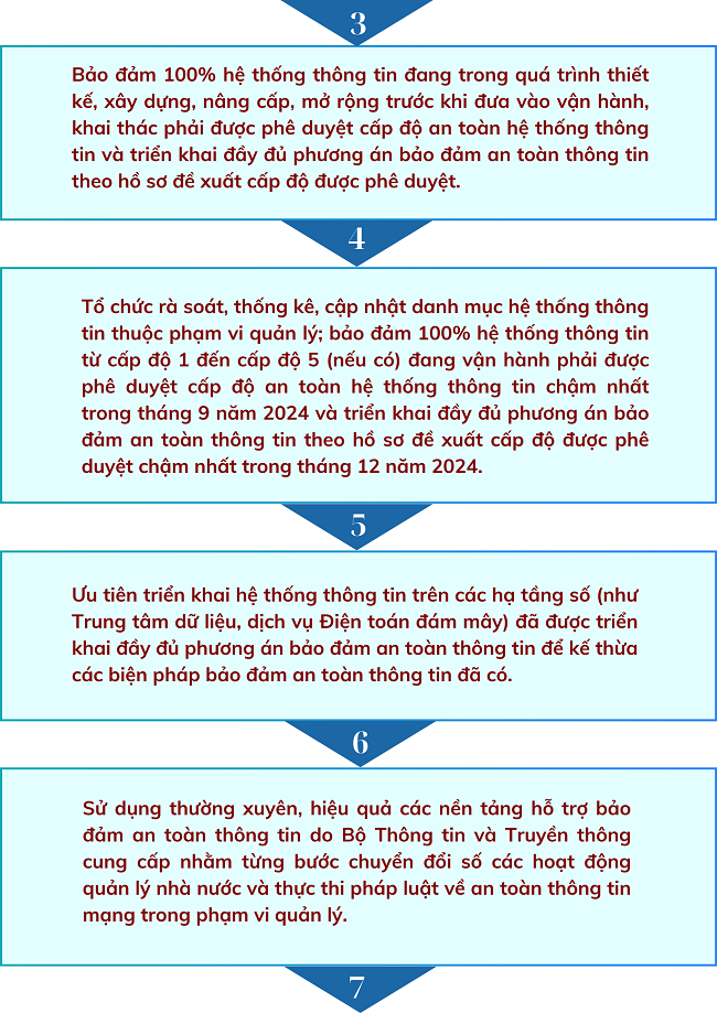 Để đẩy mạnh công tác tuân thủ quy định pháp luật và tăng cường bảo đảm an toàn hệ thống thông tin theo cấp độ, ngày 23/02/2024 Thủ tướng Chính phủ ban hành Chỉ thị số 09/CT-TTg về tuân thủ quy định pháp luật và tăng cường bảo đảm an toàn hệ thống thông tin theo cấp độ với một số giải pháp như sau: