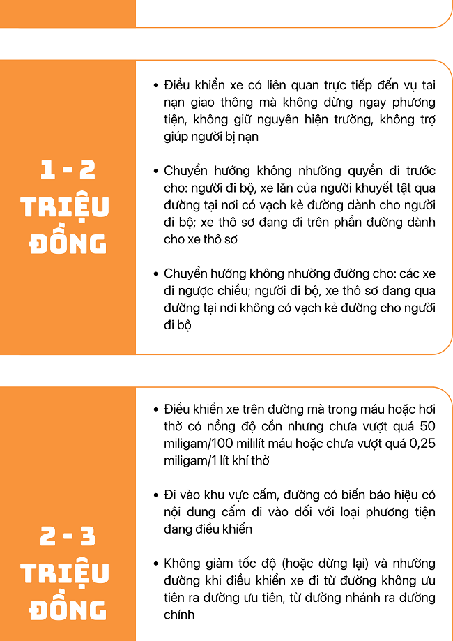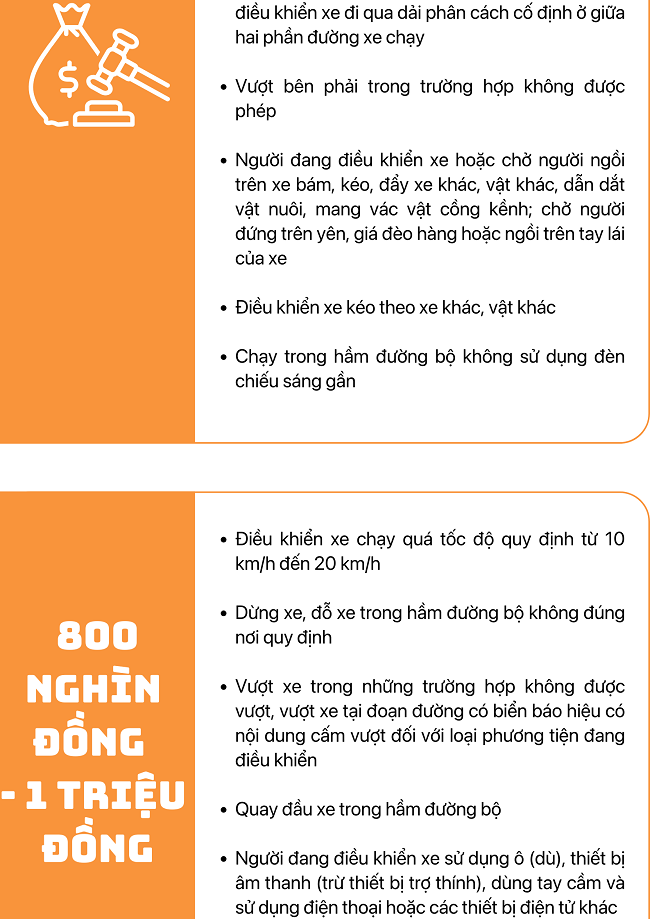 Một số mức xử phạt vi phạm quy tắc giao thông đường bộ đối với xe mô tô, xe gắn máy