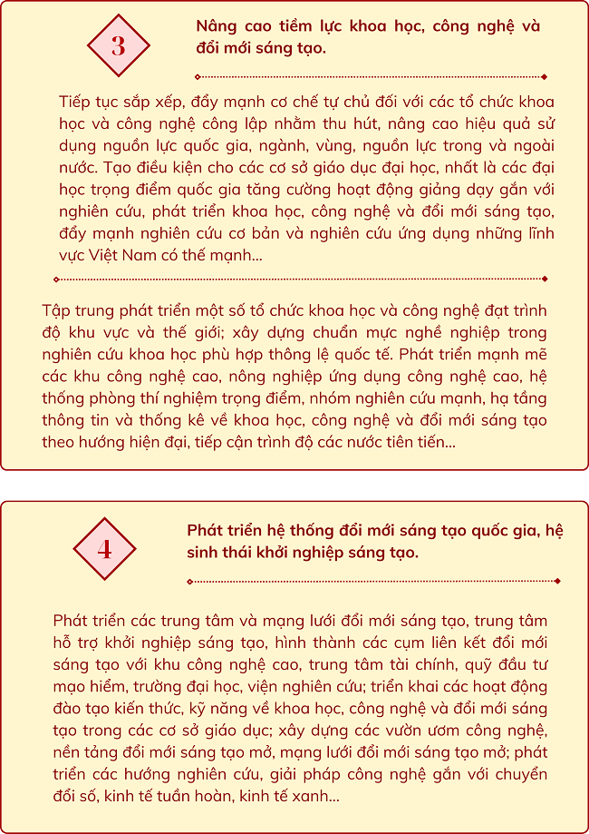 Ngày 11/01/2024 Bộ Chính trị ban hành Kết luận số 69-KL/TW tiếp tục thực hiện Nghị quyết số 20-NQ/TW, ngày 01/11/2012 của Ban Chấp hành Trung ương Đảng khoá XI về phát triển khoa học và công nghệ phục vụ sự nghiệp công nghiệp hoá, hiện đại hoá trong điều kiện kinh tế thị trường định hướng xã hội chủ nghĩa và hội nhập quốc tế với một số nhiệm vụ trọng tâm như sau: