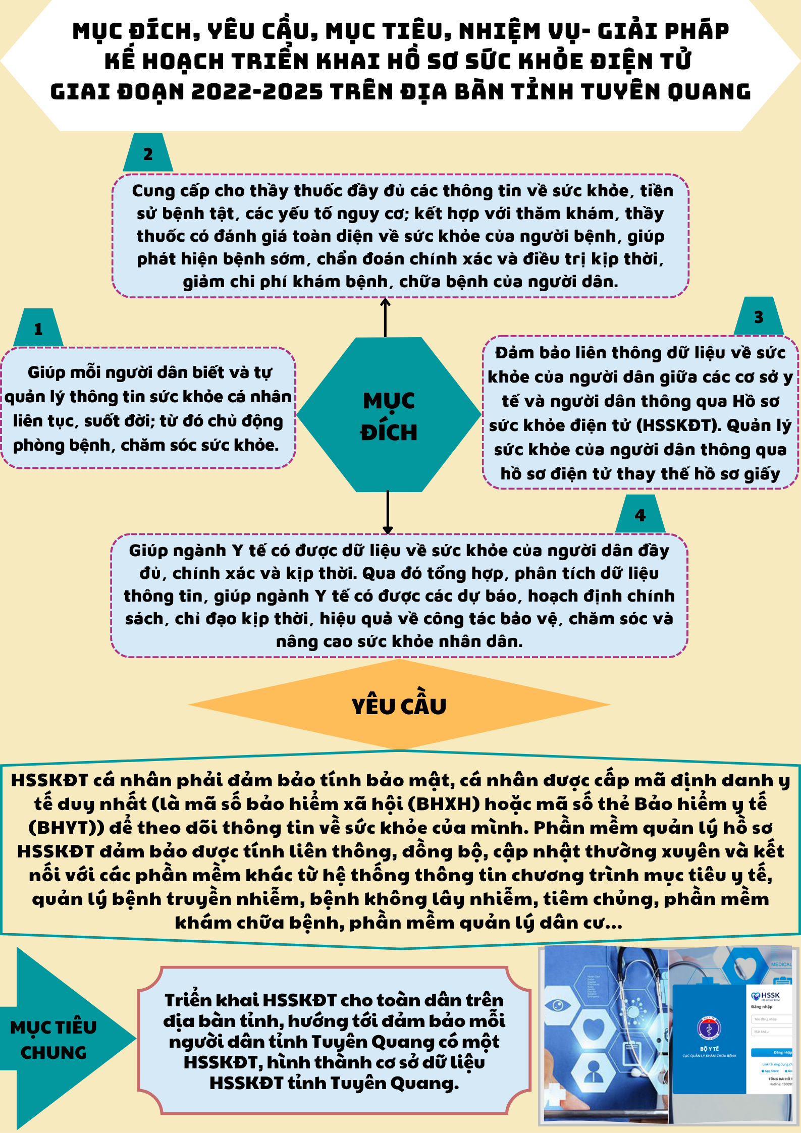 Mục đích, yêu cầu, mục tiêu, nhiệm vụ-giải pháp triển khai hồ sơ sức khỏe điện tử giai đoạn 2022-2025 trên địa bàn tỉnh Tuyên Quang.