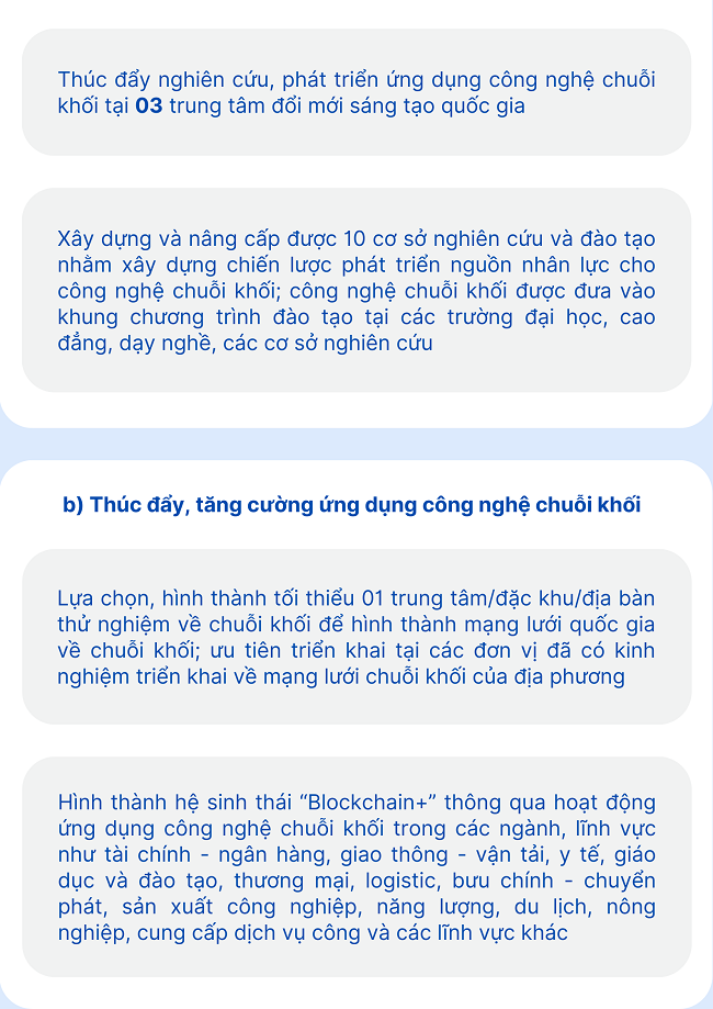 Ngày 22/10/2024, Chính phủ ban hành Quyết định số 1236/QĐ-TTg về Chiến lược quốc gia về ứng dụng và phát triển công nghệ chuỗi khối (blockchain) đến 2025, định hướng đến 2030 với mục tiêu, một số nhiệm vụ, giải pháp như sau:
