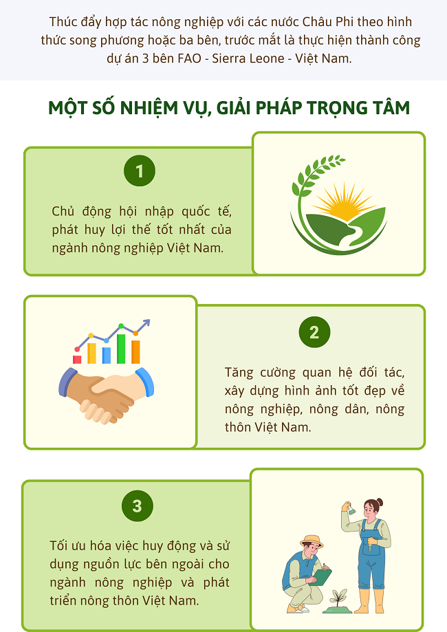 Mục tiêu, một số nhiệm vụ, giải pháp trọng tâm thực hiện đề án thúc đẩy hợp tác quốc tế và hội nhập kinh tế quốc tế trong nông nghiệp và pháp triển nông thôn đến năm 2030, tầm nhìn đến năm 2050