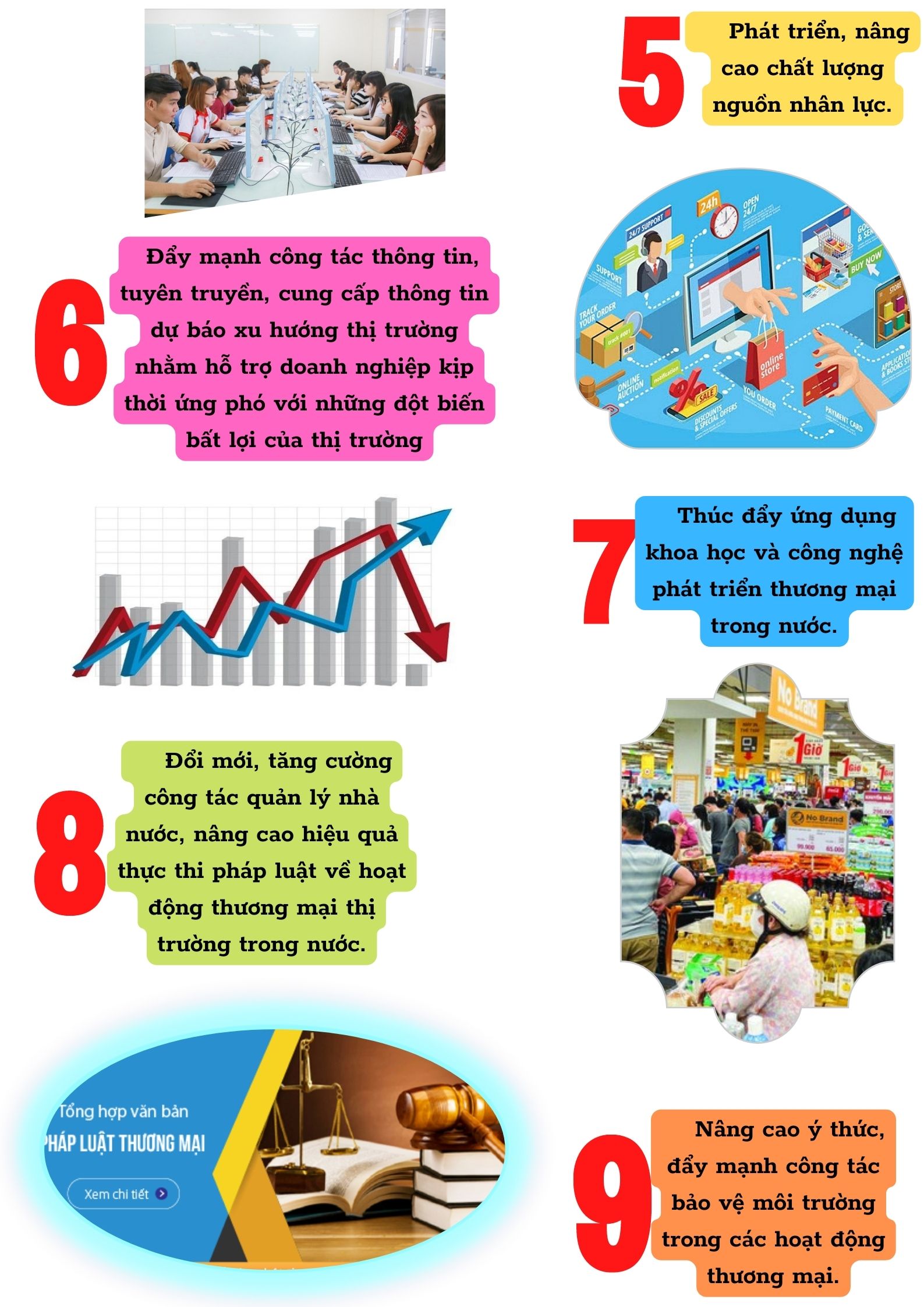 Ngày 04/7/2021, Thủ tướng Chính phủ đã ban hành Quyết định số 4463/QĐ-TTg phê duyệt Chiến lược phát triển thương mại trong nước giai đoạn đến năm 2030, tầm nhìn đến năm 2045 với mục tiêu, nhiệm vụ và giải pháp chủ yếu như sau: