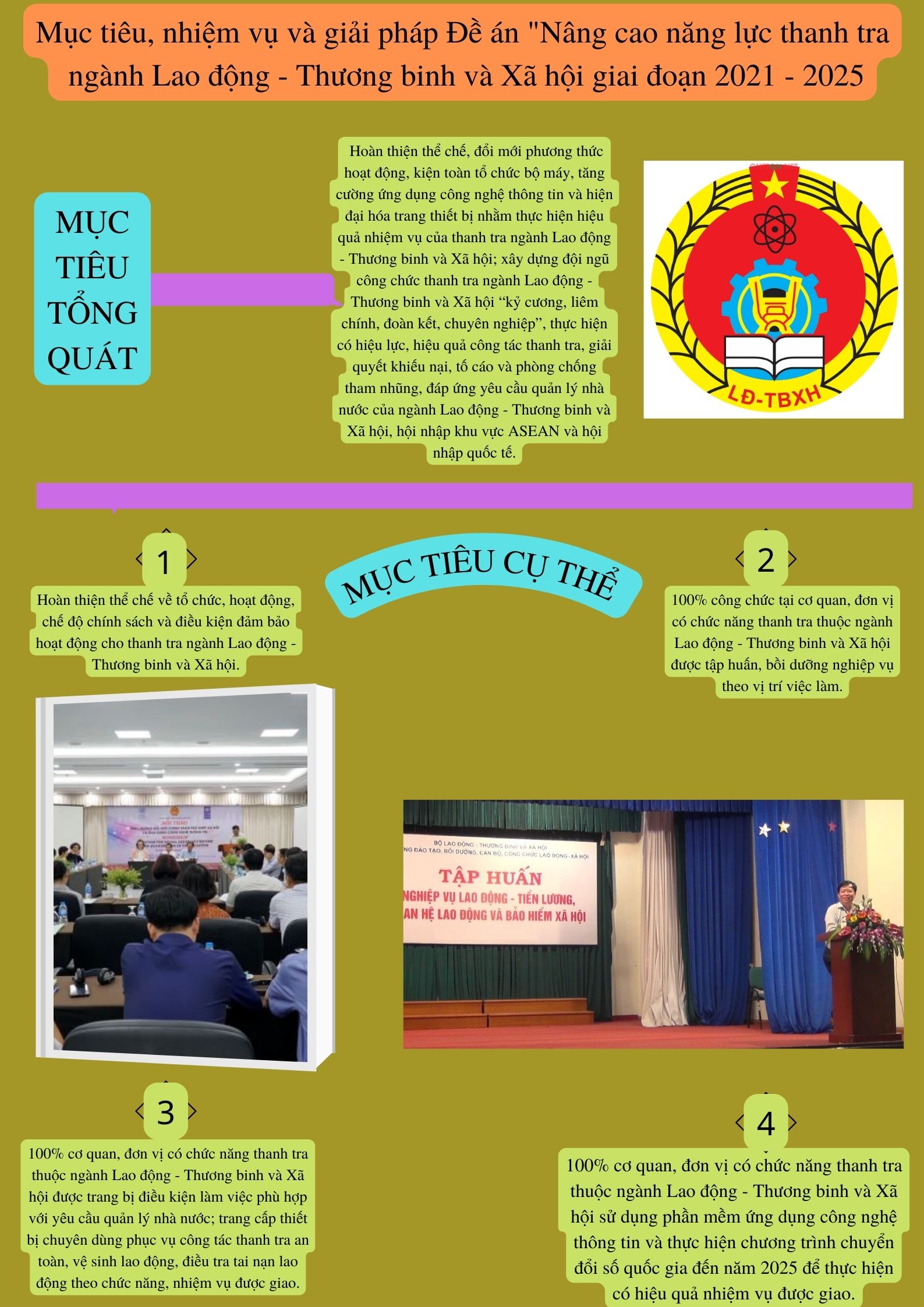 Ngày 16/02/2022, Thủ tướng Chính phủ đã ban hành Quyết định số 212/QĐ-TTg phê duyệt Đề án "Nâng cao năng lực thanh tra ngành Lao động - Thương binh và Xã hội giai đoạn 2021-2025" với mục tiêu, nhiệm vụ và giải pháp, như sau: