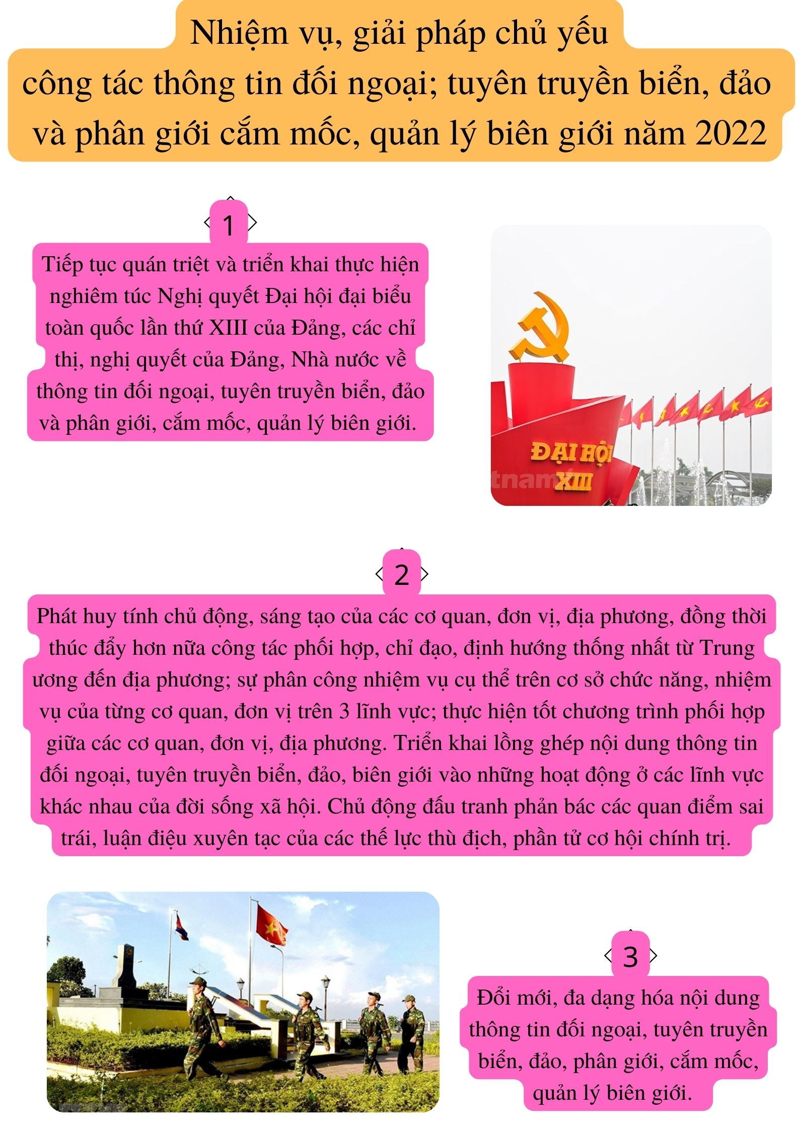 Nhiệm vụ, giải pháp chủ yếu công tác thông tin đối ngoại; tuyên truyền biển, đảo và phân giới, cắm mốc, quản lý biên giới năm 2022