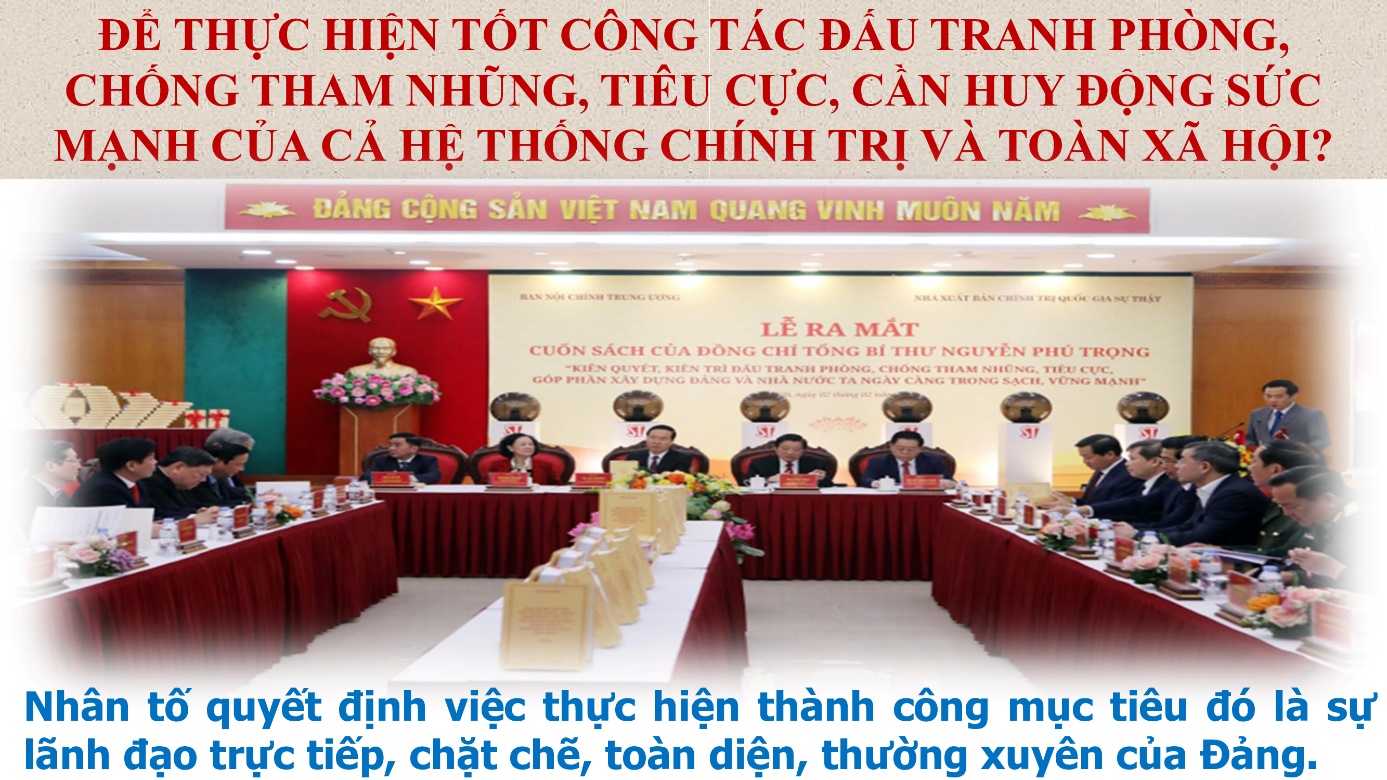Trong cuốn sách “Kiên quyết, kiên trì đấu tranh phòng, chống tham nhũng, tiêu cực, góp phần xây dựng Đảng và Nhà nước ta ngày càng trong sạch, vững mạnh”, Tổng Bí thư Nguyễn Phú Trọng nhấn mạnh trong công tác phòng chống tham nhũng: Xây là cơ bản, chống là quan trọng, xây cũng là để chống mà chống chính là để xây, để cảnh tỉnh, cảnh báo, ngăn ngừa, răn đe; cần có cơ chế kiểm soát quyền lực cho tốt, nhốt quyền lực vào trong lồng cơ chế, kiểm tra ngang, kiểm tra dọc, từ trên xuống, từ dưới lên, nhân dân giám sát, từng đoàn thể phải có cơ chế kiểm tra, giám sát, chống lạm quyền.