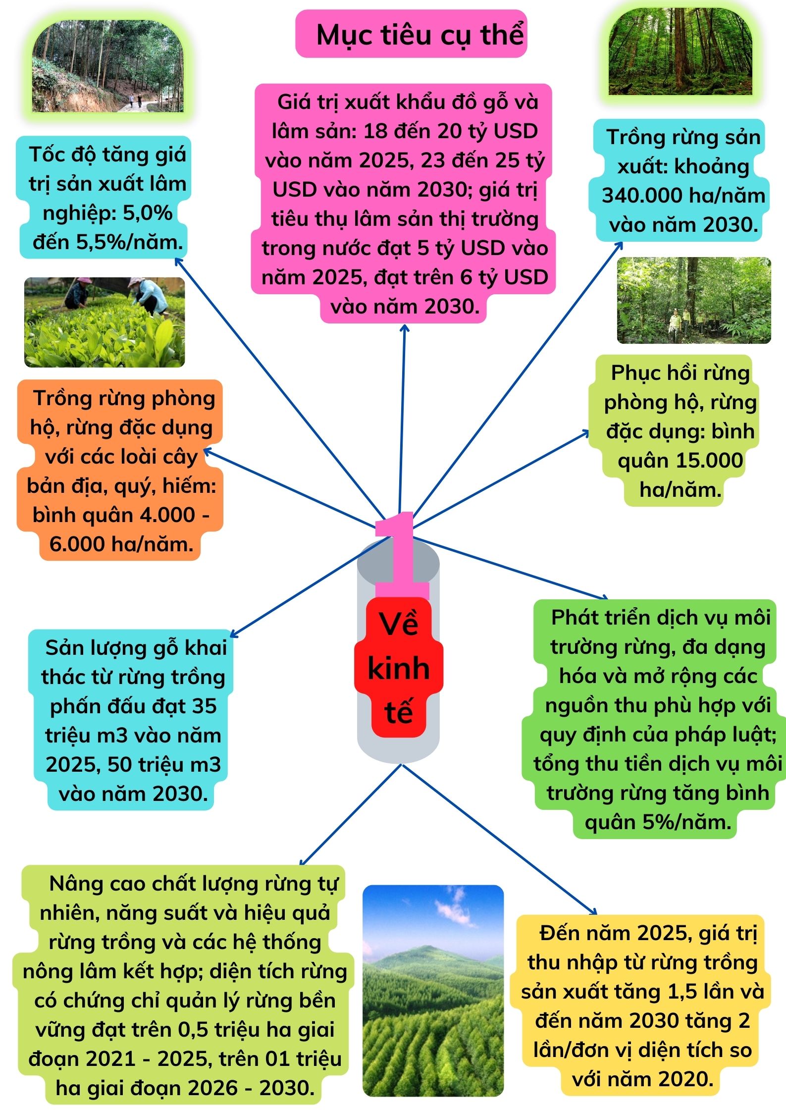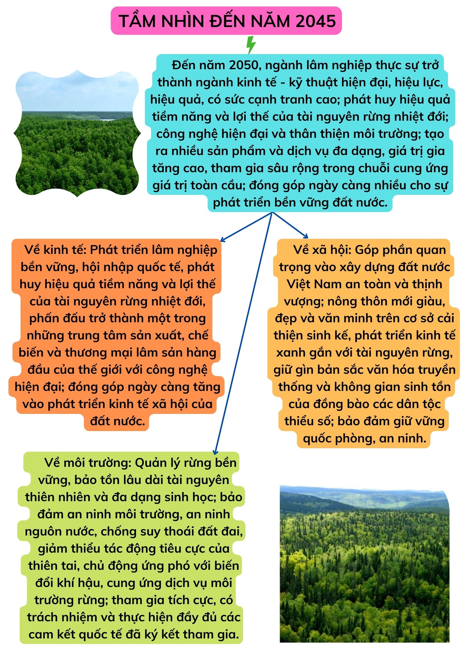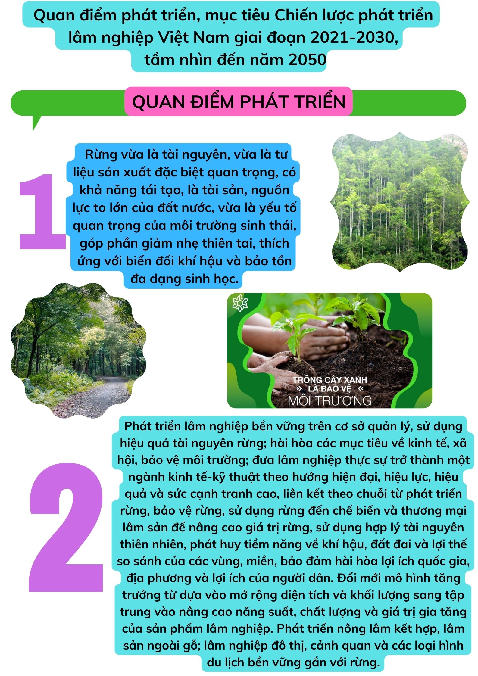 Ngày 01/4/2021, Thủ tướng Chính phủ đã ban hành Quyết định số 523/QĐ-TTg phê duyệt Chiến lược phát triển lâm nghiệp Việt Nam giai đoạn 2021-2030, tầm nhìn đến năm 2050 với quan điểm, mục tiêu như sau: