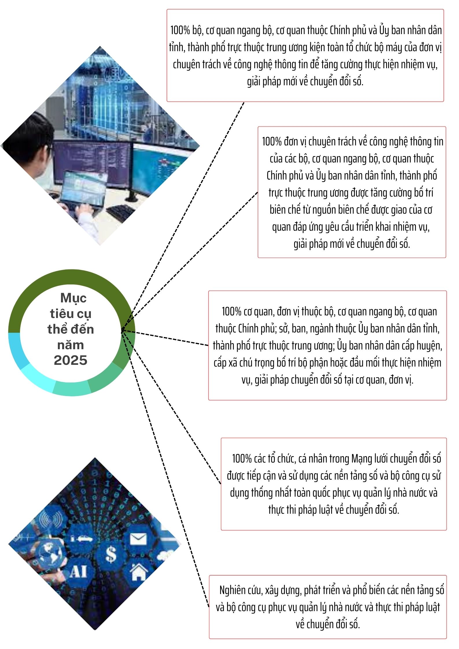 Ngày 26/12/2023, Thủ tướng Chính phủ ban hành Quyết định số 1690/QĐ-TTg phê duyệt Đề án “Kiện toàn tổ chức bộ máy, nâng cao năng lực quản lý nhà nước và thực thi pháp luật về chuyển đổi số từ trung ương đến địa phương đến năm 2025, định hướng đến năm 2030” với quan điểm, mục tiêu, nhiệm vụ và giải pháp chủ yếu như sau: