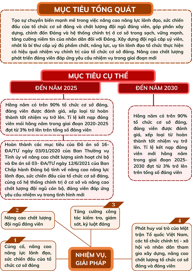 Ngày 20/10/2022, Ban Chấp hành Đảng bộ tỉnh (Khóa XVII) ban hành Chương trình hành động số 26-CTr/TU về thực hiện Nghị quyết số 21-NQ/TW ngày 16/6/2022 của Ban Chấp hành Trung ương Đảng khóa XIII về tăng cường củng cố, xây dựng tổ chức cơ sở đảng và nâng cao chất lượng đội ngũ đảng viên trong giai đoạn mới với quan điểm, mục tiêu,nhiệm vụ giải pháp như sau: