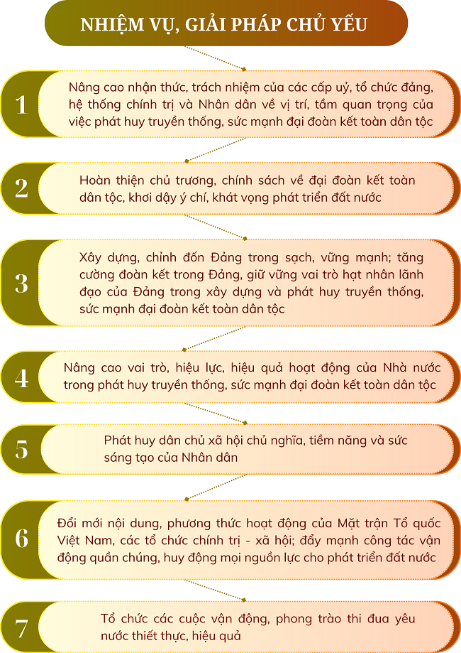 Quan điểm, mục tiêu, nhiệm vụ và giải pháp tiếp tục phát huy truyền thống, sức mạnh đại đoàn kết toàn dân tộc, xây dựng đất nước ta ngày càng phồn vinh, hạnh phúc