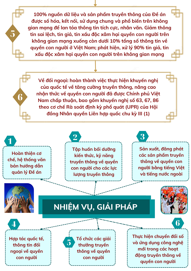 Ngày 14/9/2022, Thủ tướng chính phủ ban hành Quyết định số 1079/QĐ-TTg về phê duyệt đề án truyền thông về quyền con người ở Việt Nam với Quan điểm, mục tiêu, nhiệm vụ và giải pháp như sau: