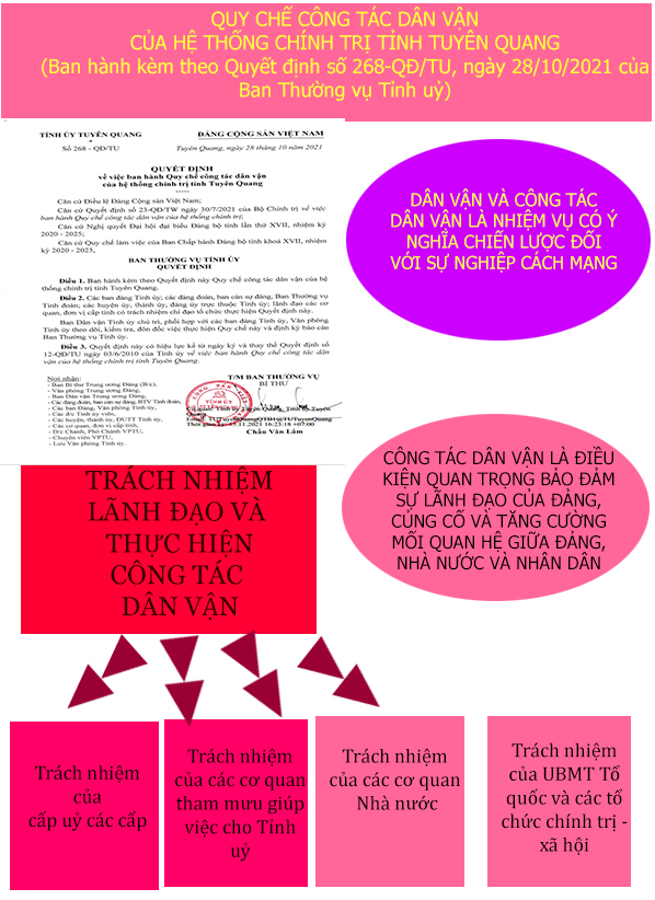 Ngày 28/10/2021, Ban Thường vụ Tỉnh uỷ đã ban hành Quyết định số 268-QĐ/TU về việc ban hành Quy chế dân vận của hệ thống chính trị tỉnh Tuyên Quang