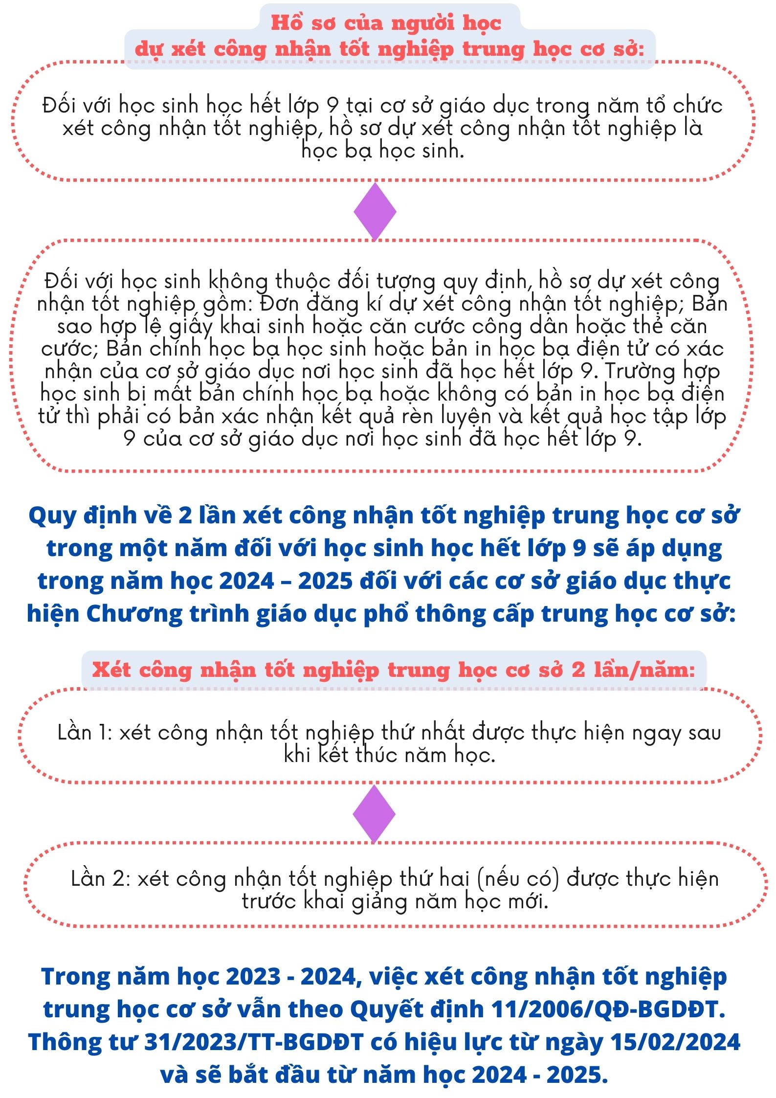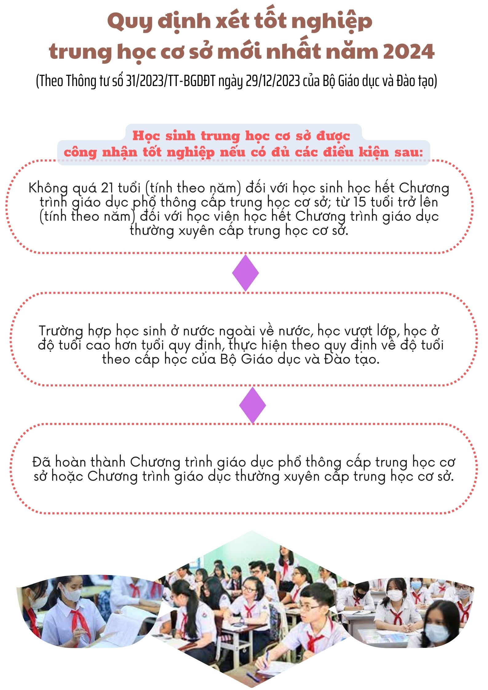 Ngày 29/12/2023, Bộ Giáo dục và Đào tạo ban hành Thông tư số 31/2023/TT-BGDĐT về Quy chế xét công nhận tốt nghiệp trung học cơ sở với một số quy định như sau: