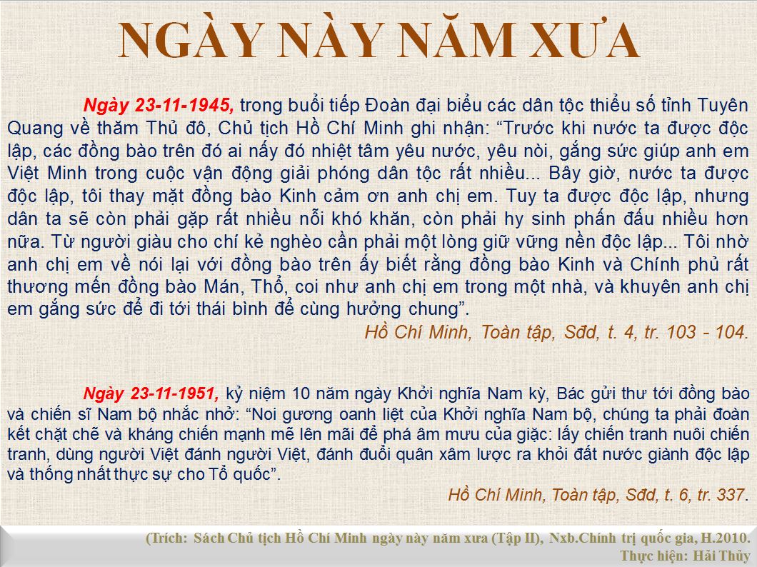 Nhân dịp Lễ khai giảng khoá học đầu tiên của Trường Quân y ngày 21-11-1946, Bác có lời khuyên sinh viên Trường Quân y đăng trên Báo Cứu quốc, số 414, ngày 23-11-1946, trong đó nêu rõ: