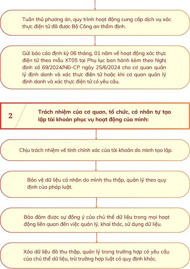 Trách nhiệm của tổ chức cung cấp dịch vụ xác thực điện tử và cơ quan, tổ chức, cá nhân tự tạo lập tài khoản