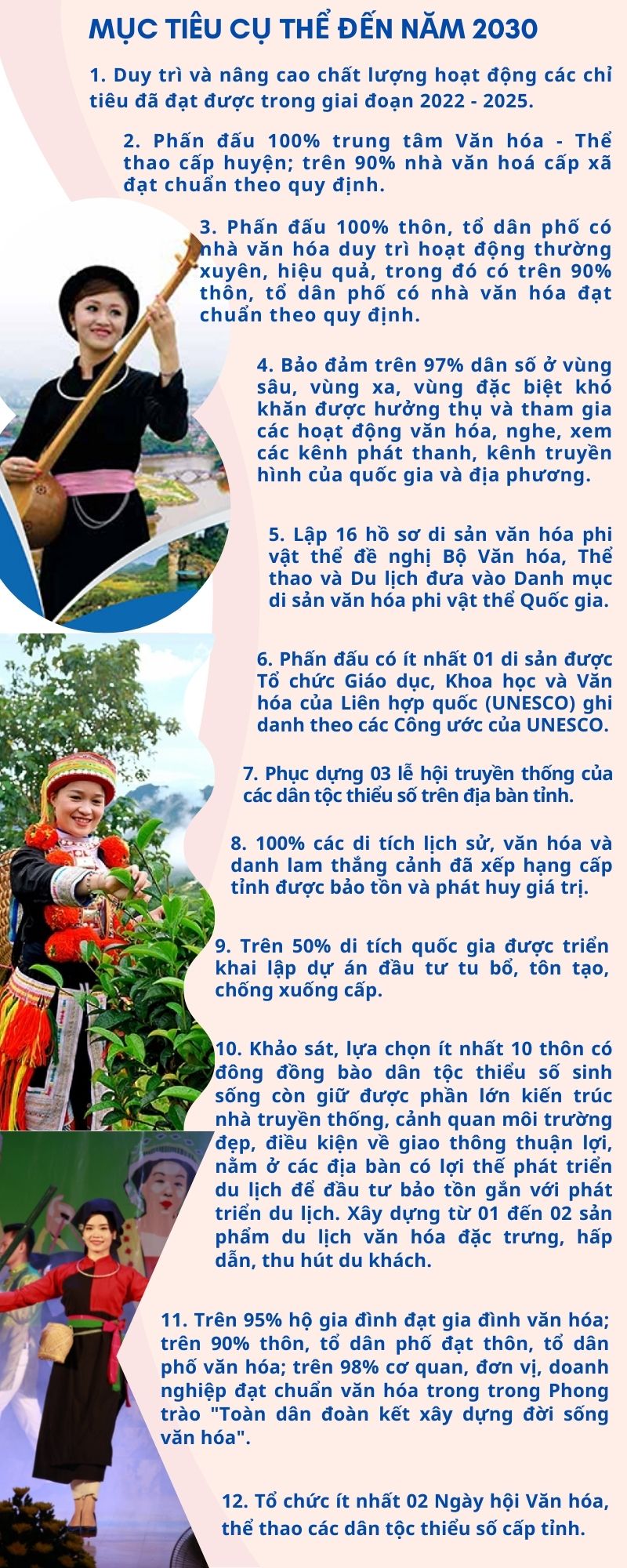 Thực hiện Quyết định số 1090/QĐ-TTg ngày 12/11/2021 của Thủ tướng Chính phủ về việc phê duyệt Chiến lược phát triển văn hoá Việt Nam đến năm 2030; ngày 27/4/2022, Uỷ ban nhân dân tỉnh đã ban hành Kế hoạch số 70/KH-UBND thực hiện Chiến lược phát triển Văn hoá đến năm 2030 trên địa bàn tỉnh, trong đó đề ra các mục tiêu, nhiệm vụ và giải pháp để thực hiện.