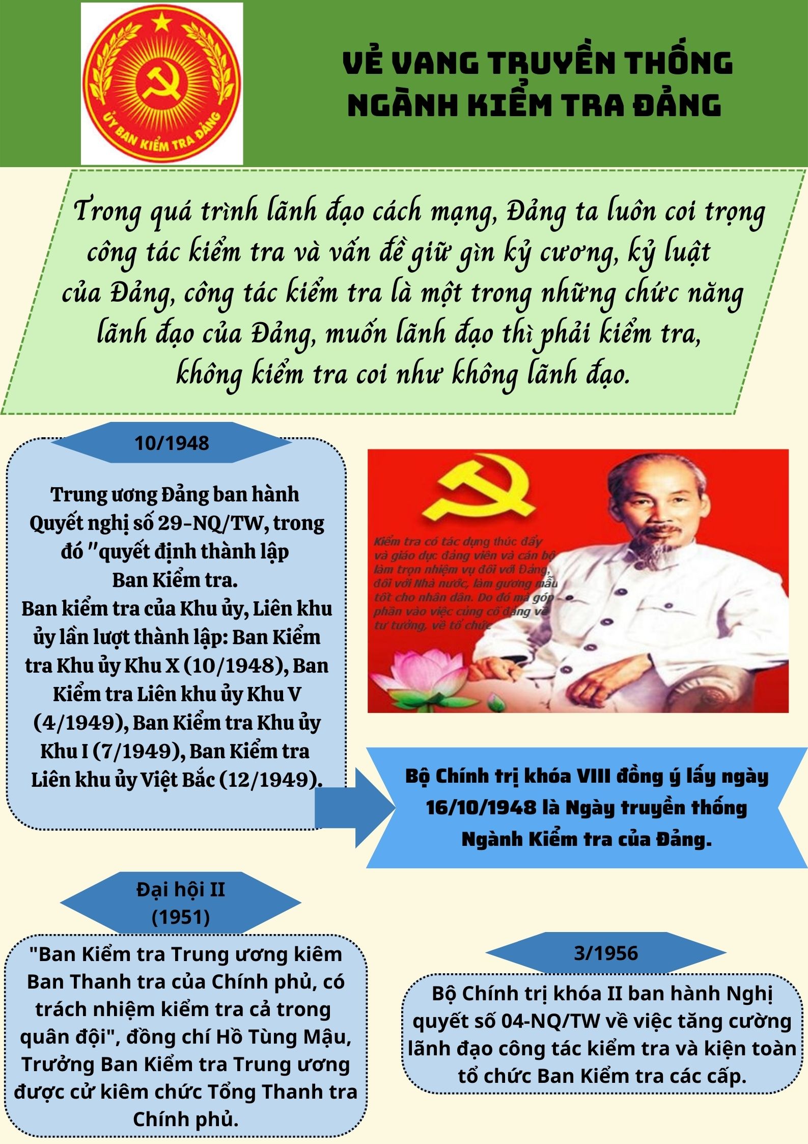 của Đảng, công tác kiểm tra là một trong những chức năng lãnh đạo của Đảng, muốn lãnh đạo thì phải kiểm tra,