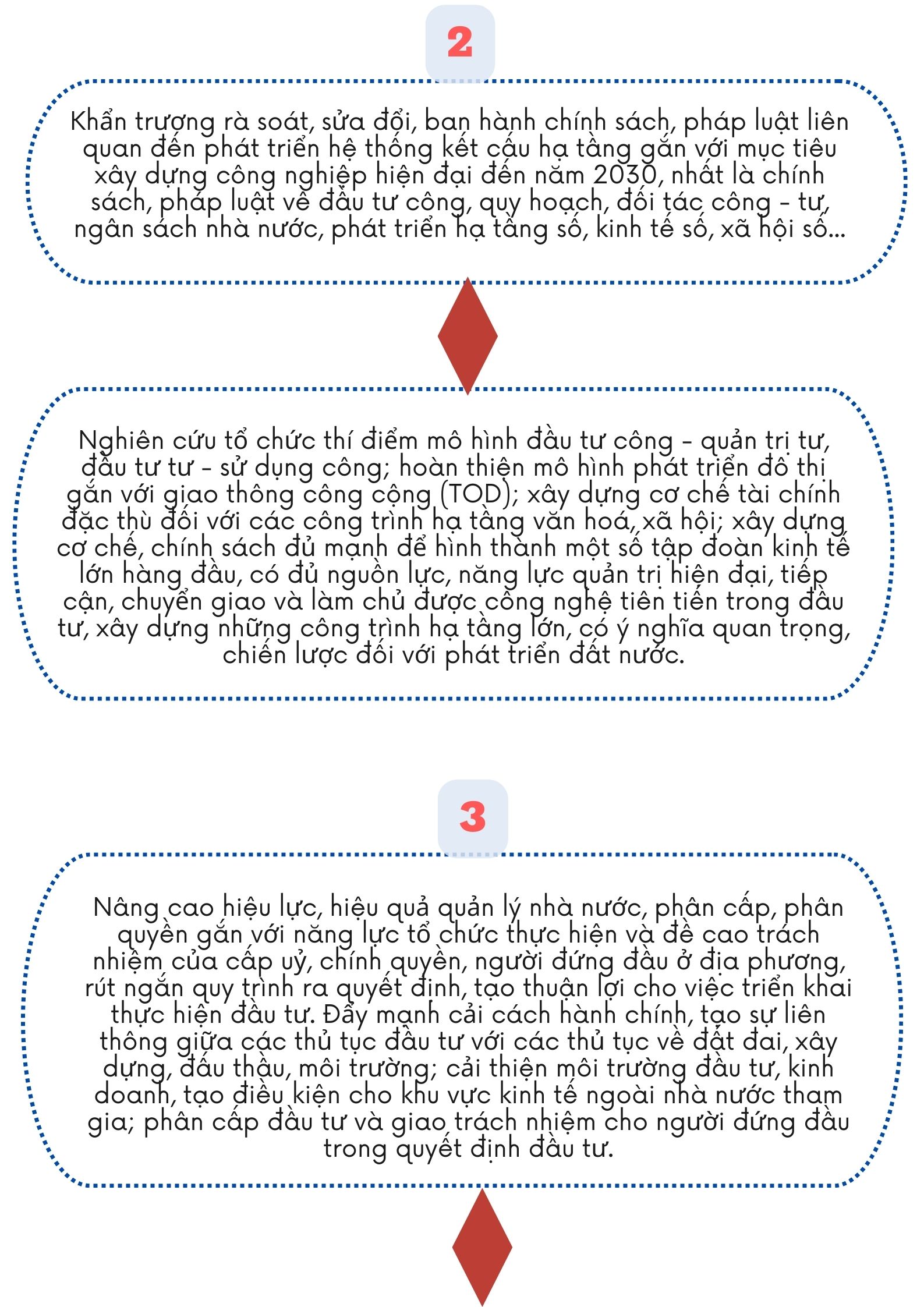 Ngày 23/02/2024, Bộ Chính trị ban hành Kết luận số 72-KL/TW về tiếp tục thực hiện Nghị quyết số 13-NQ/TW, ngày 16/01/2012 của Ban Chấp hành Trung ương Đảng khóa XI về xây dựng kết cấu hạ tầng đồng bộ nhằm đưa nước ta cơ bản trở thành nước công nghiệp theo hướng hiện đại với một số nhiệm vụ và giải pháp chủ yếu như sau: