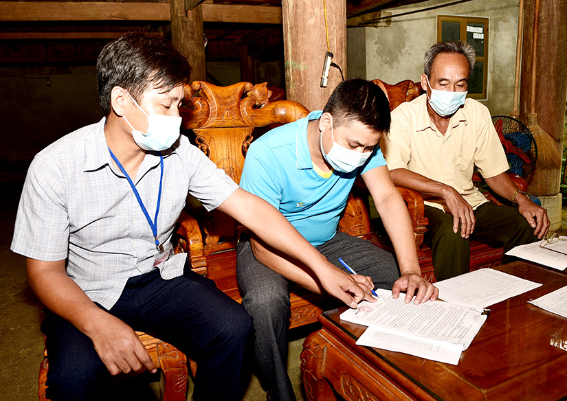 Gia đình anh Nguyễn Văn Vượng, thôn Bản Khiển ký cam kết phòng chống Covid với thôn.