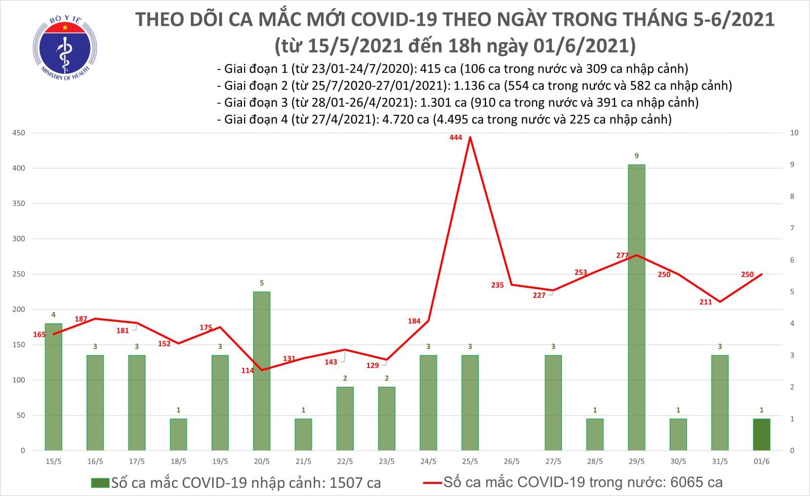 - Trong ngày 01/6, Việt Nam ghi nhận thêm 251 ca mắc mới: