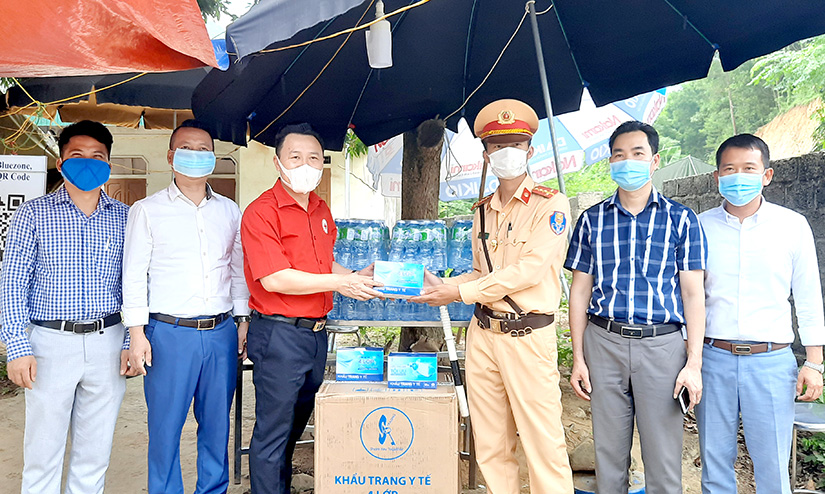 Đại diện Hội Chữ thập đỏ tỉnh và các nhà tài trợ tặng chốt kiểm dịch xã Sơn Nam (Sơn Dương)