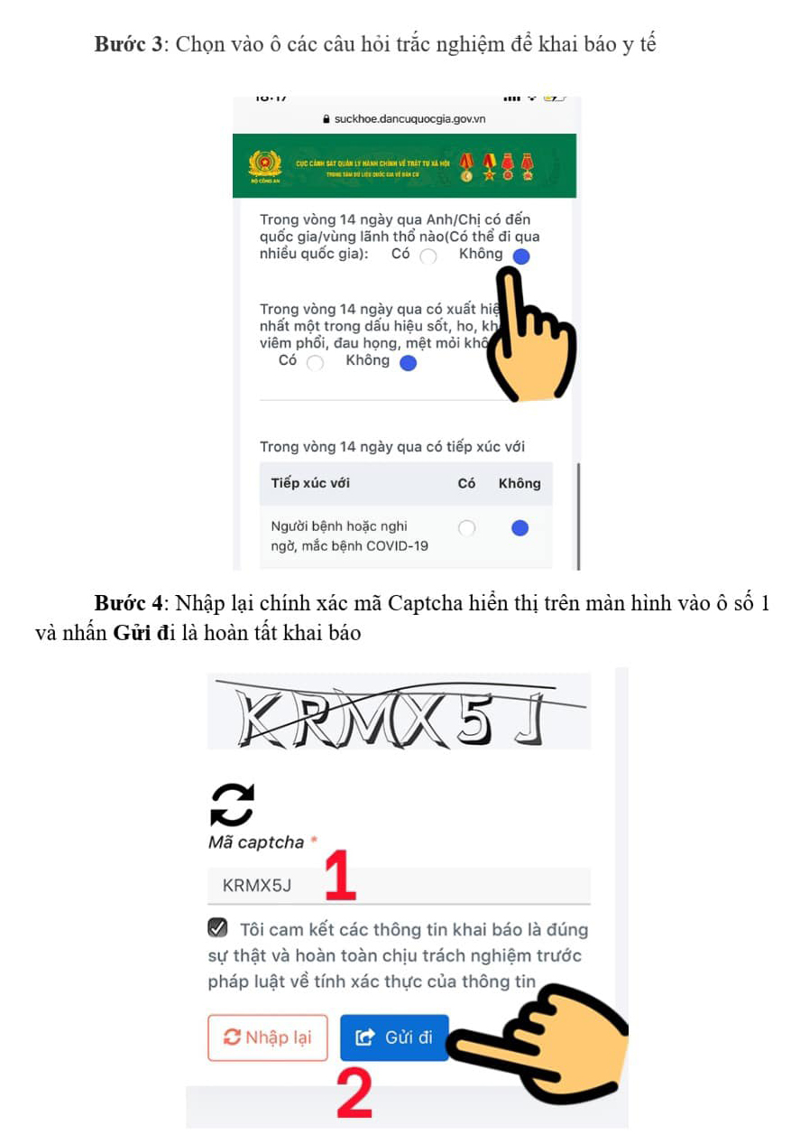 Hướng dẫn khai báo y tế kiểm soát Covid-19 trên nền tảng cơ sở dữ liệu dân cư