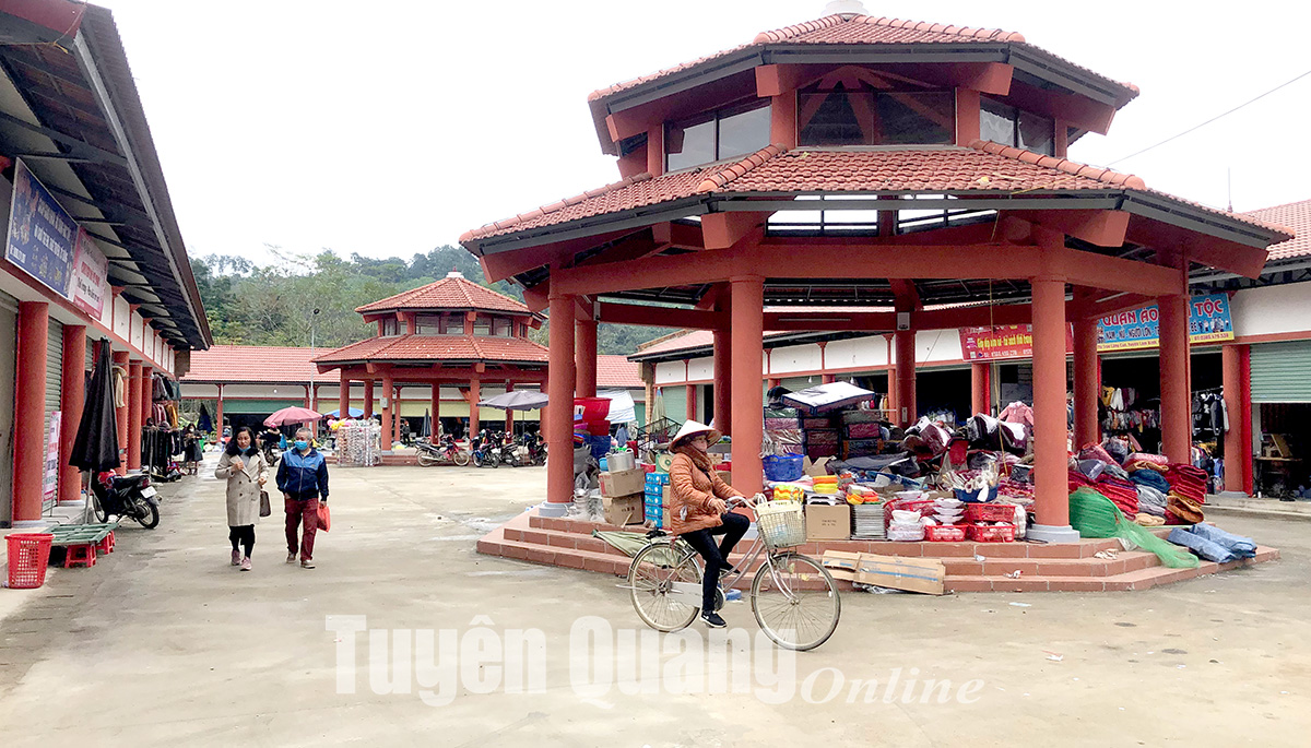 Chợ trung tâm huyện Lâm Bình cũng đã hoạt động trở lại.