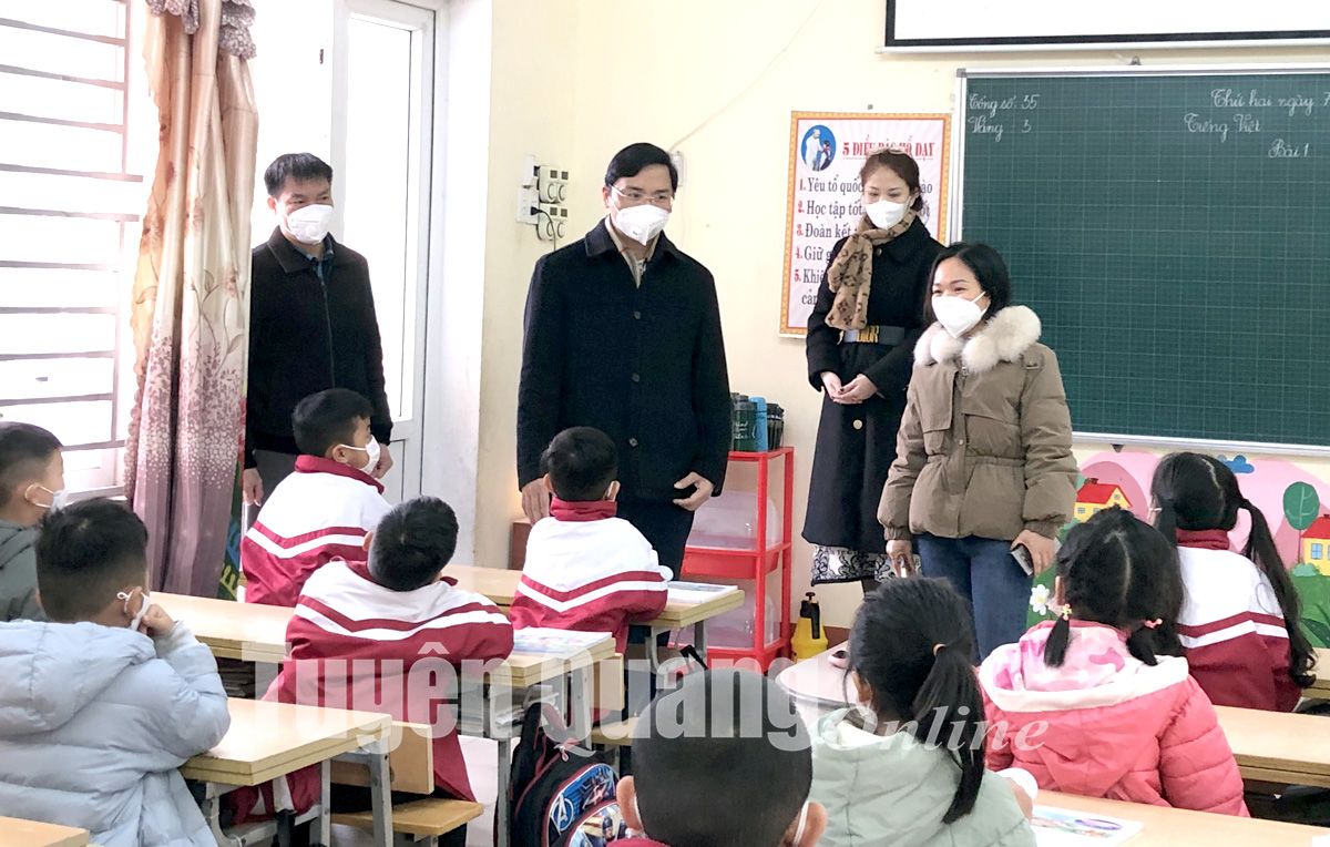 Tại Trường Tiểu học Bình Thuận (TP Tuyên Quang), trong tuần học sinh đến trường trở lại sau Tết đã phát hiện hơn chục trường hợp dương tính với Covid-19, có trường hợp chưa xác định được nguồn lây. Cô giáo Nguyễn Thị Thu Hương, Hiệu trưởng nhà trường cho biết, tình hình dịch có diễn biến rất phức tạp sau thời gian học sinh nghỉ Tết nên nhà trường thực hiện chỉ đạo kế hoạch dạy học theo ngày. Đối với lớp có học sinh F0 chuyển ngay sang dạy học trực tuyến, lớp có F1 chờ kết quả test sẽ điều chỉnh phương án dạy học phù hợp…