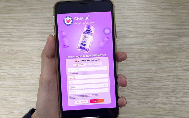 Trang web của Quỹ vaccine phòng chống Covid-19 với giao diện di động, thuận tiện cho người dân ủng hộ vào Quỹ.