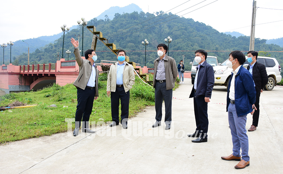 Đồng chí Nguyễn Hưng Vượng, Ủy viên Ban Thường vụ Tỉnh ủy, Trưởng Ban Dân vận Tỉnh ủy, Chủ tịch Ủy ban MTTQ tỉnh cùng lãnh đạo Sở Y tế và UBND huyện Lâm Bình khảo sát khu vực trường THPT Lâm Bình để chuẩn bị thành lập bệnh viện dã chiến.