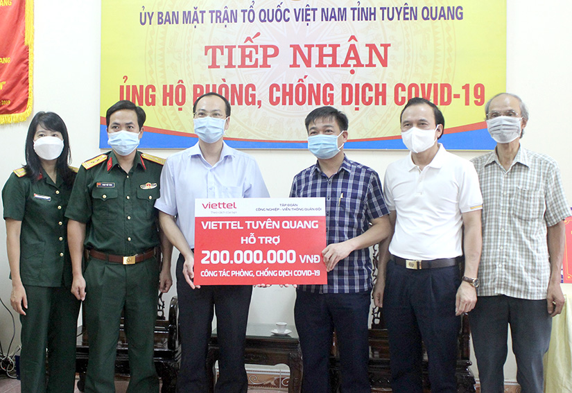 Tại buổi tiếp nhận, Viettel Tuyên Quang đã trao số tiền 200 triệu đồng của đơn vị và 10 triệu đồng của khối thi đua doanh nghiệp I hỗ trợ công tác phòng, chống dịch Covid-19 trên địa bàn tỉnh cho Ban Thường trực Ủy ban MTTQ tỉnh.